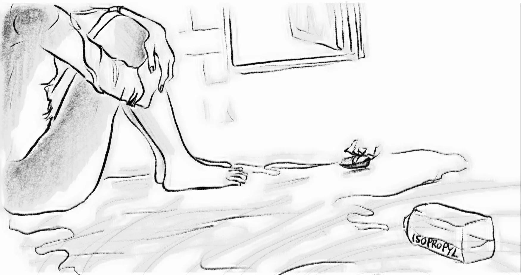 Crouched naked on the ground, my hands and knees are digging into the rug I can never clean right. I’m sitting in front of a small fan with tears in my eyes and lingering traces of isopropyl on my fingertips. A stink bug crawls out of my window, tripping on crumbling paint. Lungs full of fumes, sights set on my ceiling, the bug loses its footing and falls. I sit on my wet floor and think about shame.